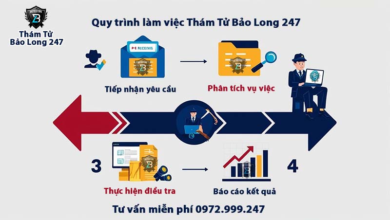 Chúng tôi luôn cam kết với khách hàng về một quá trình làm việc minh bạch, rõ ràng từ đầu đến cuối. Trước khi bắt đầu dịch vụ, Thám tử Bảo Long 247 sẽ cung cấp báo giá chi tiết, bao gồm các khoản phí cần thiết và phương án điều tra phù hợp.